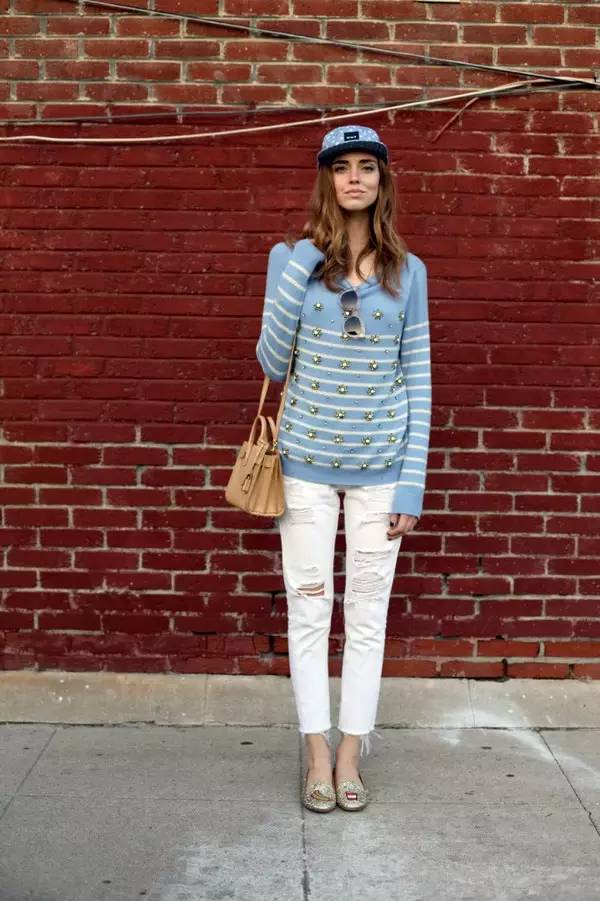 挪威时尚博主Hanneli Mustaparta选择Prada的Mini贝壳包,凉鞋和太阳镜的款式都很抢眼,可是因为包包是Baby size款的,还真是一点也不输风头;