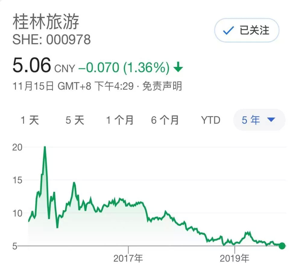比如“山水甲天下”的桂林,桂林景区以山水资源作为依托,于2000年培育出了一家以景区旅游为主业的上市公司「桂林旅游」。但事实上,景区客单价已经从2012年的73.6元/人次下降到了2018年的59.3元/人次,降幅近20%,桂林景区的游客数量在2018年和2019年上半年的增速也出现了明显放缓。