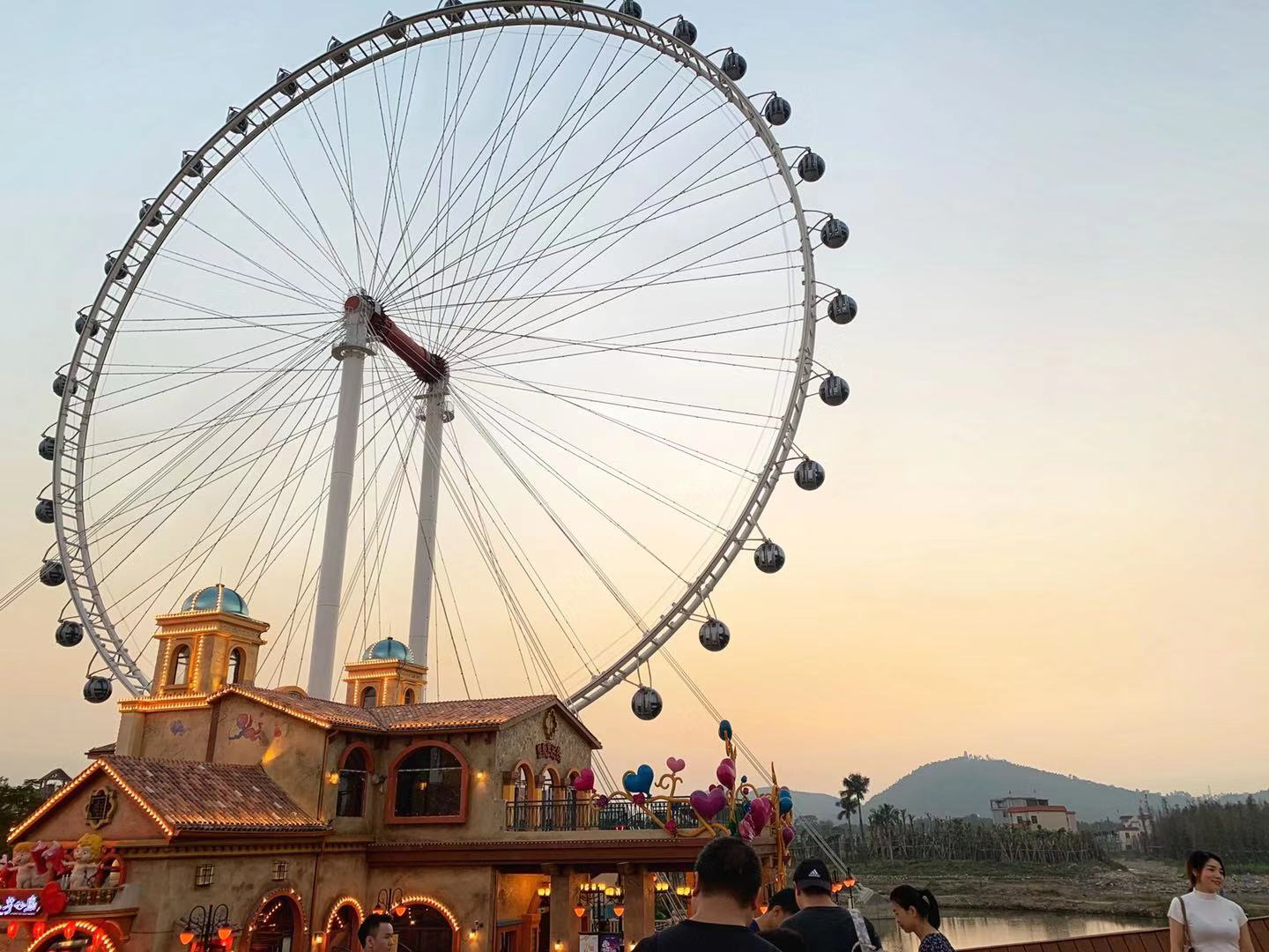 在欢乐海岸plus庞大构想的当下,工地、高速公路、高架桥包围着它。从摩天轮向外眺望,远处是遥远苍翠的顺峰山,近处则是坑洼不断的建筑工地。高矗的摩天轮中蕴含着浪漫与爱情,摩天轮外囊括的则是华侨城对于文旅综合项目的新构想与新未来。