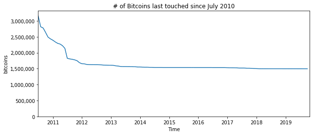 为了保守估计,我们将只统计2010年7月前未移动过的币。理由很简单:由于(当时)比特币的感知价值非常低,因此人们没有多少动力去备份钱包。