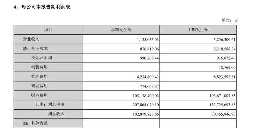 而备受质疑的地方不止这一处,第三季度东旭光电合并利润表中营收为40.91亿元,但在母公司的利润表中,第三季度营收仅有113.5万元。