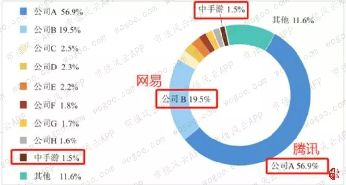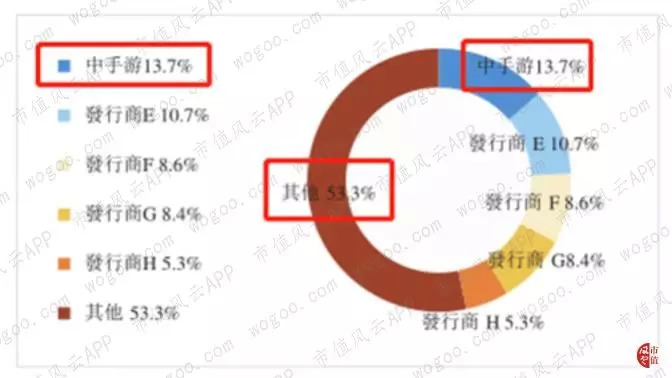 不过,如果按发行IP游戏所得收入来计,中手游则名列榜首,占据了13.7%的市场份额。