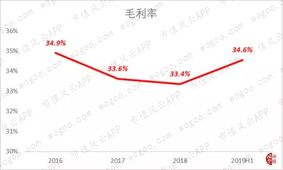 从收入中扣除销售成本即得到公司的毛利润,其占公司收入的比重一直较为稳定。2019年上半年,公司的毛利率为34.6%。