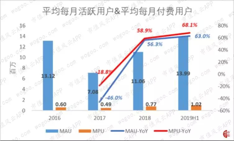 2019年上半年,MAU同比增长63%至1,399万,MPU同比增长68.1%至102万,MAU和MPU均创下历史新高。