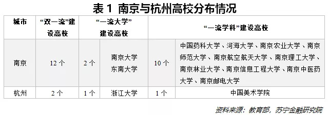 教育资源方面,南京拥有数量更多的“一流大学”,在“一流学科”建设高校上的资源也更加丰富。杭州依靠浙江大学,在大学建设上一枝独秀。