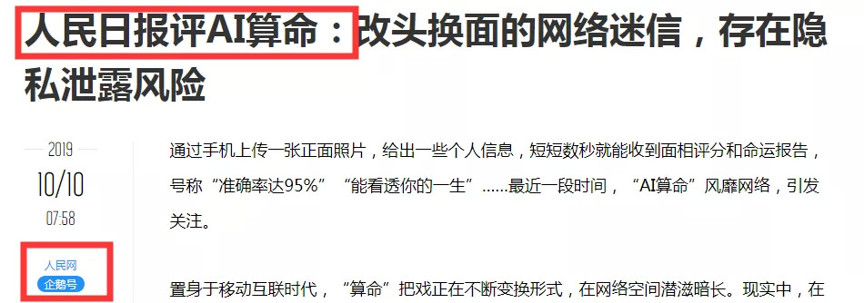 没错,就是前阵子遭官媒批评的“AI算命,大数据算命”