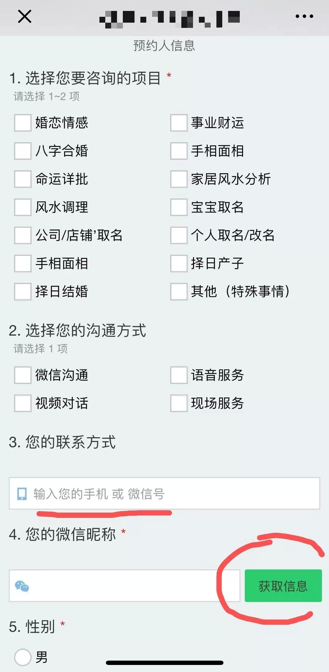收集信息很好理解,算命嘛,什么生辰八字,面相手相,qq号码、手机号码、微信信息等等等等,要求你填表的填表,拍照的拍照。