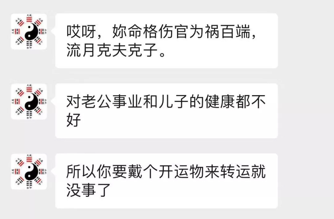 如果在聊天之中你透漏的资料再详实一点,涉及到房产,那就会说你住家风水不好,要改风水。涉及到车辆、办公室、床位摆放都有一套说辞。