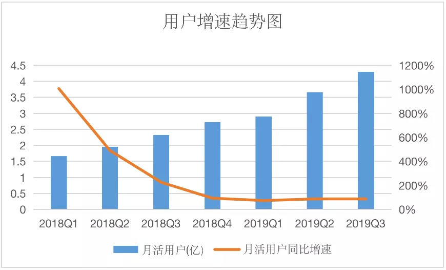 用户数据层面,坐拥4.3亿全景用户的拼多多,活跃用户的增速也在持续放缓: