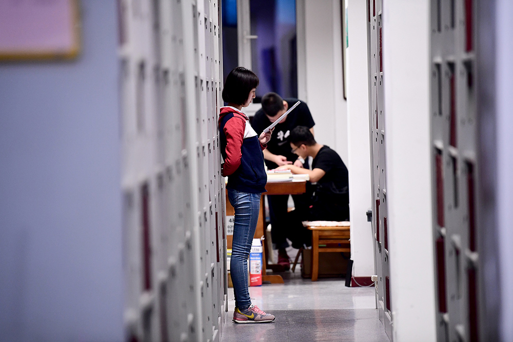 2019年11月2日,在安徽阜阳师范大学西湖校区,准备参加考研的学生在紧张备战。