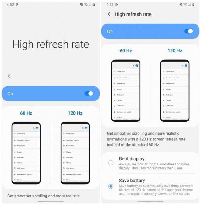 在One UI 2.0 Beta版中,三星添加了切换120Hz的选项,支持手机在60Hz和120Hz之间进行切换。也就是说Galaxy S11系列手机将采用120Hz刷新率显示屏。