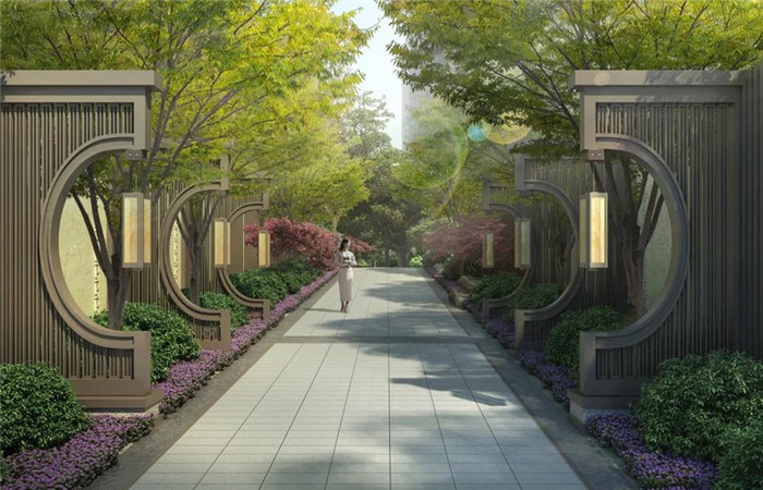 “一轴五园·两庭九景”的园林胜境,在一条诗意弥漫的轴线上从容铺展,紫林呈祥、竹林沐雨、旭日凝烟、青翠欲滴、烟风相倚五园遥相呼应,外围由玺樾、羽冠、金钿、梳篦、步摇、鎏金、玉璧、罗裳、明珠九景环抱,花木叠翠之间,刻画了整座园林的起承转合,移步入园,遍地锦绣。