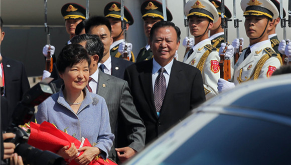 据悉,韩国总统朴槿惠2日上午乘专机抵达北京,开始对中国进行为期三天的访问。朴槿惠下机后前往人民大会堂,上午会晤中国国家主席习近平,下午将同中国国务院总理李克强举行会谈。