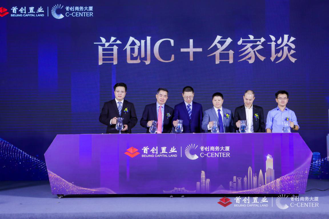 随后,孙杰刚先生、陈志武先生、周哲先生、林扬先生、冯林先生、邝勇军先生登台共同见证首创C+赋能平台名家谈的盛大发布,仪式现场大气恢弘、华美绚丽,升腾的雾气也象征着首创商务大厦对湾区建设发展的信心与决心。