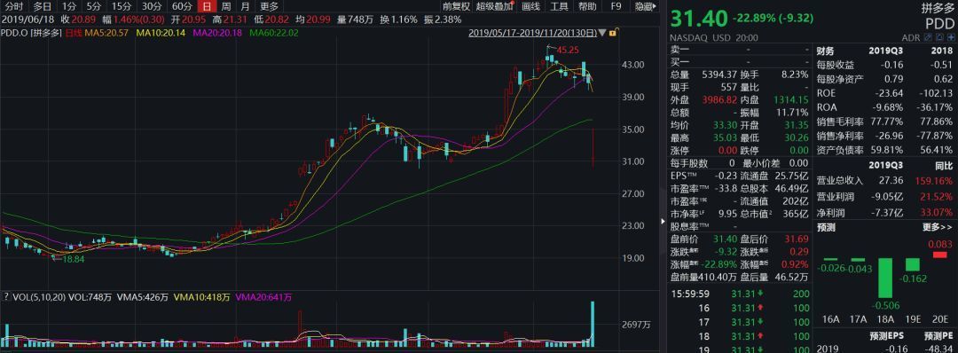 昨晚拼多多发布第三季度财务报告,亏损幅度超过此前市场预期,股价大跌22.89%。