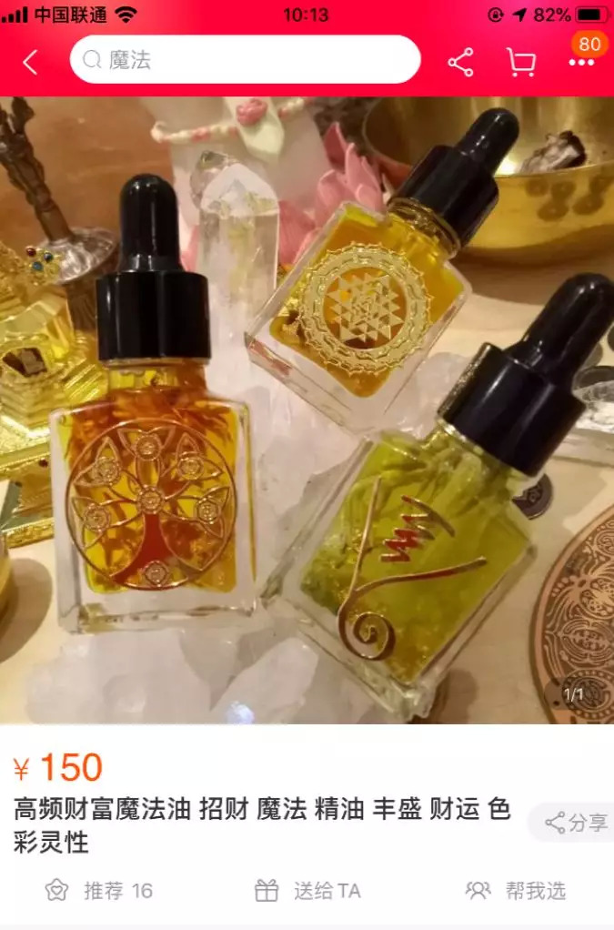 比如下图的这款招财魔法油,不要999,也不要888,只要150,就能帮你提高财运,招揽财富。