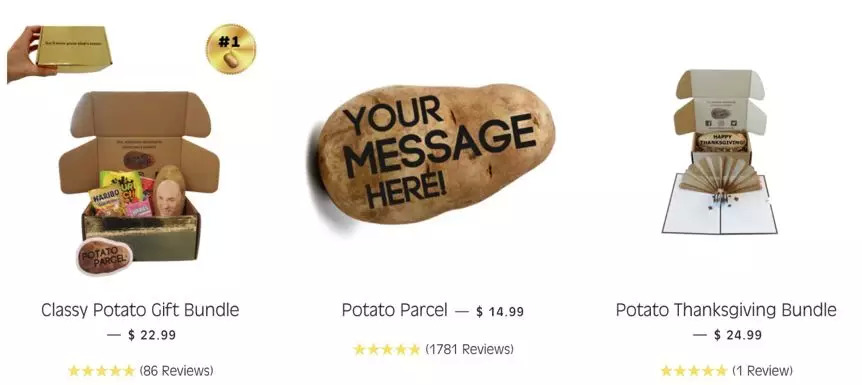时至今日,这家“土豆公司”已经运营四年了,产品种类增加了土豆3D打印、土豆绘画等,价格也从8-10美元,涨到了15-25美元不等,仍然保持着较好的销量。