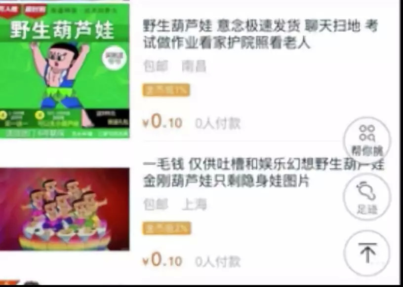 比如仅供吐槽,意念发货的野生葫芦娃。