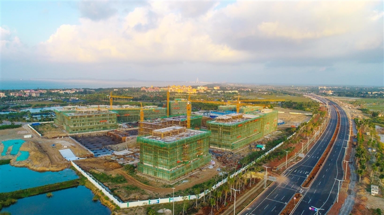 秋阳高照,11月21日上午,海口市江东新区的一处工地上,汗流浃背的工人们正各司其职,热火朝天地推进工程建设。周边的居民都说,这片工地一天一个样子,让他们充满期待。