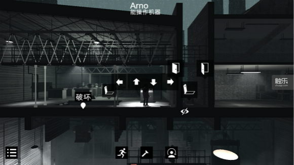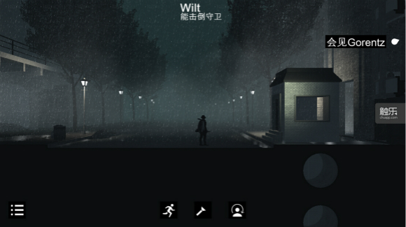 面对如此诡异的AI,游戏的操作设计并没有相应的提升,或者说,甚至让人感到别扭。在秘密潜入类游戏中,动作的灵敏程度很大程度上影响游戏体验,《黑白雨夜》作为一款移动平台的游戏,我们也不能要求他的动作设计达到PC端的《秘密潜入》、《杀手》系列一样。凑巧的是,上周劳拉姐姐顶着巨大IP光环来到iOS平台,单从动作设计的流畅程度来说,《劳拉快跑》给我的感觉是,我在操控一个人,她很灵活,是动作冒险游戏的主角胚子。而《黑白雨夜》则是,我在操控在一个笨拙的模型,他很酷,是电影中万千少女心水的男主角。在游戏中,有个让我啼笑皆非的动作,当你需要急转急停或者上下楼梯时,都会出现类似“惯性”的设计,举个例子,当你上完楼梯时,依然会保持向前的状态走两步,然后才转身继续上楼,我本想一气呵成从背后快速偷袭正在上楼梯的警卫,却因为“惯性”多走的几步让警卫拔出了枪……