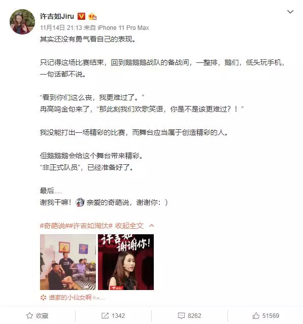 比如“超级女学霸”人设的许吉如。这位选手顶着清华本科、哈佛硕士出身,做过律师、曾获得演讲比赛冠军等等光环高调进场,瞬间拉高了观众的期待值。也正是这份高调的人设标签,成为后来她在节目中不断失票的原因。