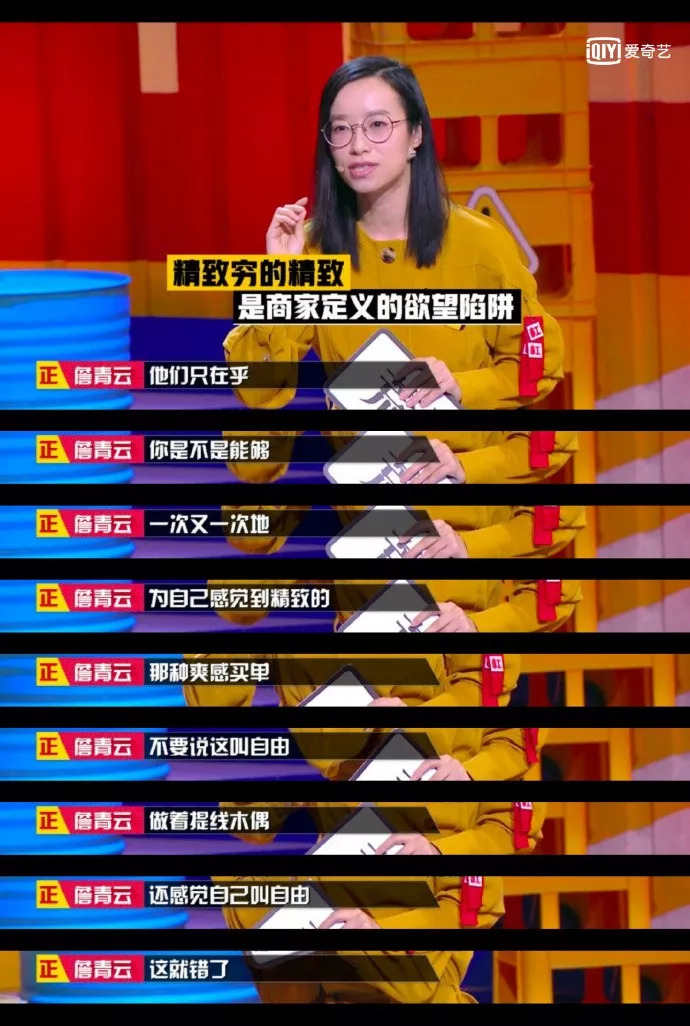 在这个舞台上,观众真正在意的仍然是“奇葩”们在辩论现场中的表现,缺乏节目经验的她,过早当上队长,但辩论表现却精彩度不够,暴露出生活阅历不足,姿态过高,辩论内容和语态过于说教,不够有趣等等问题,无法和学霸光环匹配。