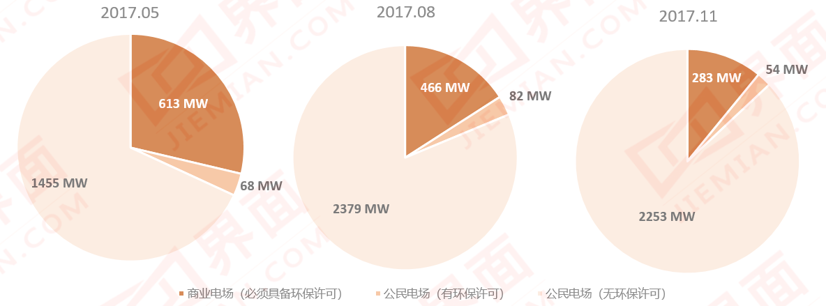 2017年,得到了政策支持的公民风电场在招标中夺得大量份额。当年8月与11月的竞标中,大型商业电场投标量下滑,公民风电场的投标占到了总投标额度的84%和89%。