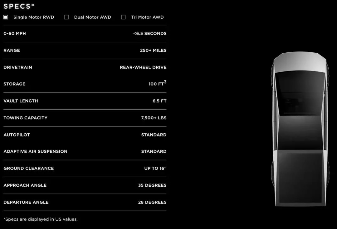 售价方面,Cybertruck 的价格介于 Model 3 的 3.9 万美元和 Model S 的 7.9 万美元之间,三种车型的价格分别为: