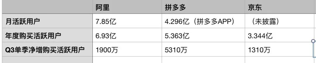 无独有偶,早于拼多多发布财报的阿里、京东,都在强调各自的用户数: