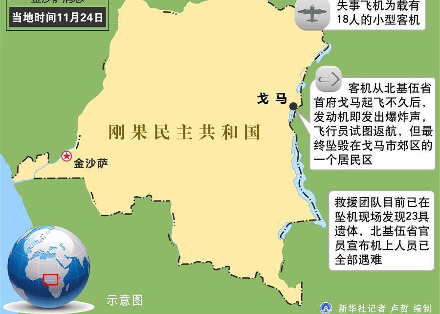 当天,一架载有16名乘客和2名机组成员的飞机在刚果(金)东部城市、北基伍省首府戈马附近坠毁。