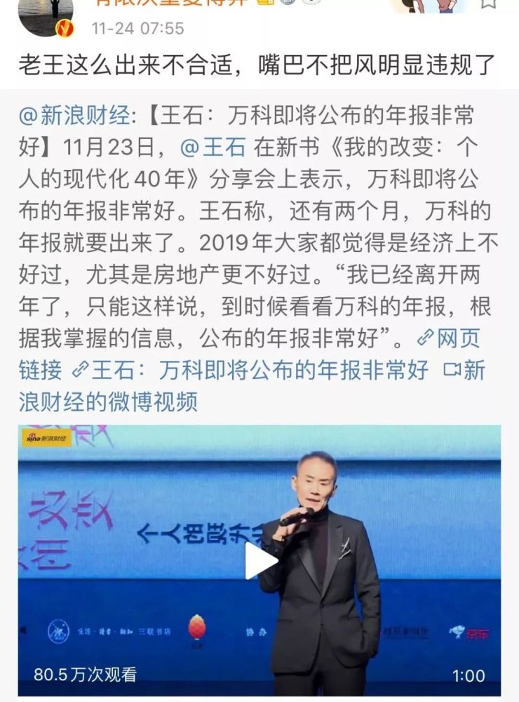 王石这么一说,万科2019年全年的业绩更加引人期待了。