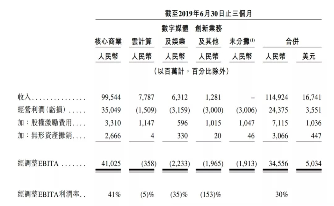招股书显示,在阿里巴巴的核心商业、云计算、数字媒体及娱乐、创新业务四大类业务中,只有核心商业盈利。其他三者的亏损状况,可能还会持续一段时间。