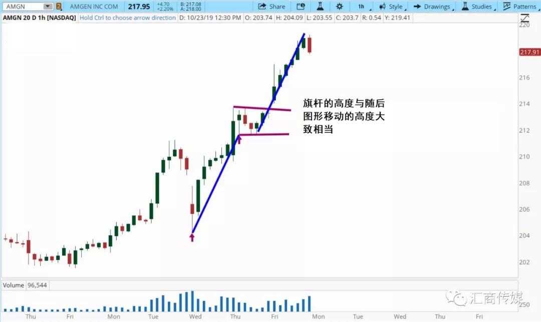 而这其中,最常见和流行的图形之一便是“旗形形态”。根据趋势和形状的不同,旗帜形态可以是看涨的,亦可是看跌的。旗形形态之所以被称为旗形,是因为图表上的价格走势类似于旗杆上的旗帜。旗杆是由价格的急剧上升或下降造成的,然后是一个横向趋势,以另一个价格的急剧上升或下降结束。