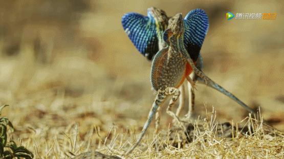 华丽扇喉蜥为了争夺吸引异性的高台,打得不可开交: