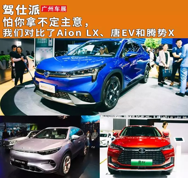 插曲说完,再看这次对比的Aion LX、唐EV和腾势X。Aion LX说自己是“豪华智能超跑SUV”,比亚迪唐EV板着一张“龙脸”停在展台“高处不胜寒”,而腾势X,似乎昨天还被认为快输掉牌局,结果今天车展上又甩出了“王炸”,引得众人“啧啧”声不断。