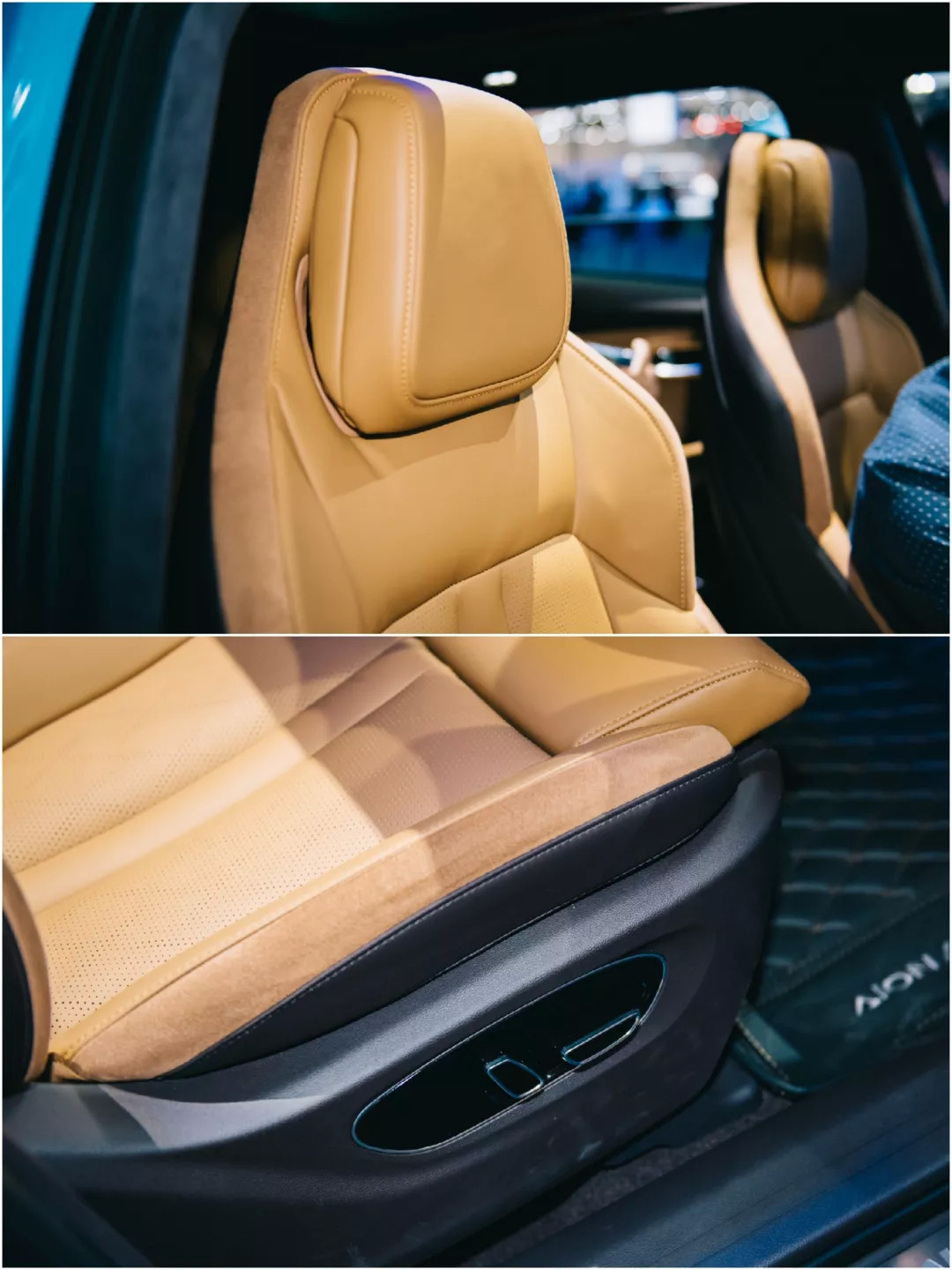 Aion LX的内饰非常有豪华行政级轿车的感觉,除了中控台和车门大量使用了真皮包覆,甚至车顶都用上了麂皮材质,用料可以说是非常的下血本。值得一提的是Aion LX的前排座椅采用了运动桶椅的设计,同时又提供了头枕和腿托,既保证了包裹性同时也兼顾了舒适。