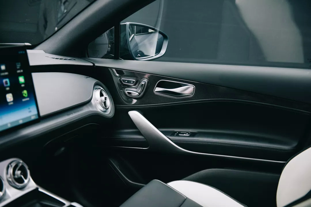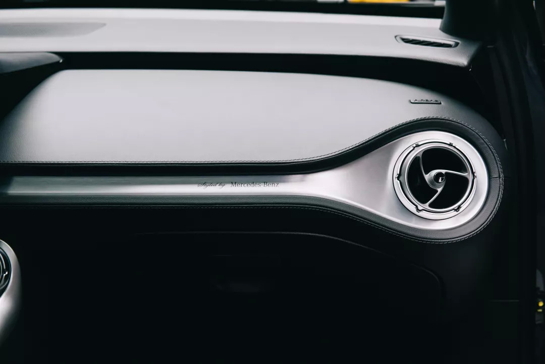 腾势X的内饰好得似乎就差一块三叉戟车标了,优雅的曲线和高级灰般的配色将“奔驰式”的豪华感演绎得淋漓尽致;螺旋状的出风口不仅阻尼质感出众,中心旋钮后方还配有7色发光环,能随车内氛围灯一起变化;而在副驾驶前,梅赛德斯-奔驰字样的“出身证明”再次显现——感觉腾势完全可以和华为组CP出一副对联,上联:“Styled by Mercedes-Benz”,下联:“超感光徕卡电影四摄”。