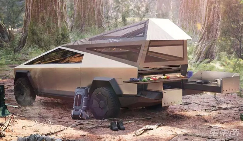 此外,Cybertruck还可以满足一些现代功能,例如车上提供100V和220V插座,可上锁的储物柜,以及一些像是车载空气压缩机这样的独特功能。