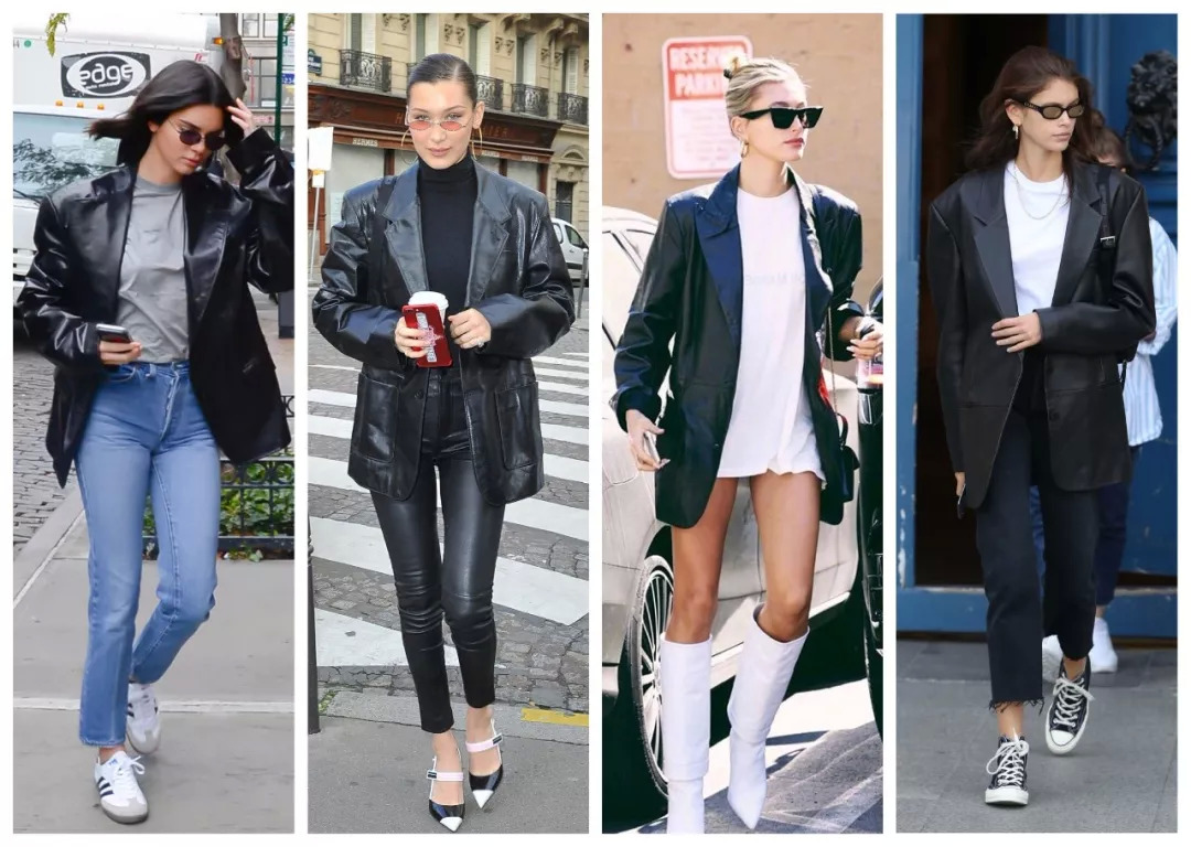 而这套一身黑皮装,今年居然被Kaia、肯豆、Bella同时演绎了“低调版”。