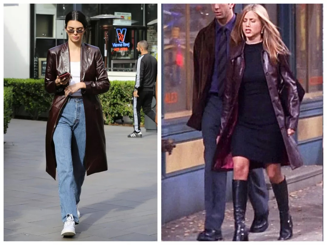 甚至Rachel穿过的酒红色皮风衣,肯豆的私服里也出现了类似款。