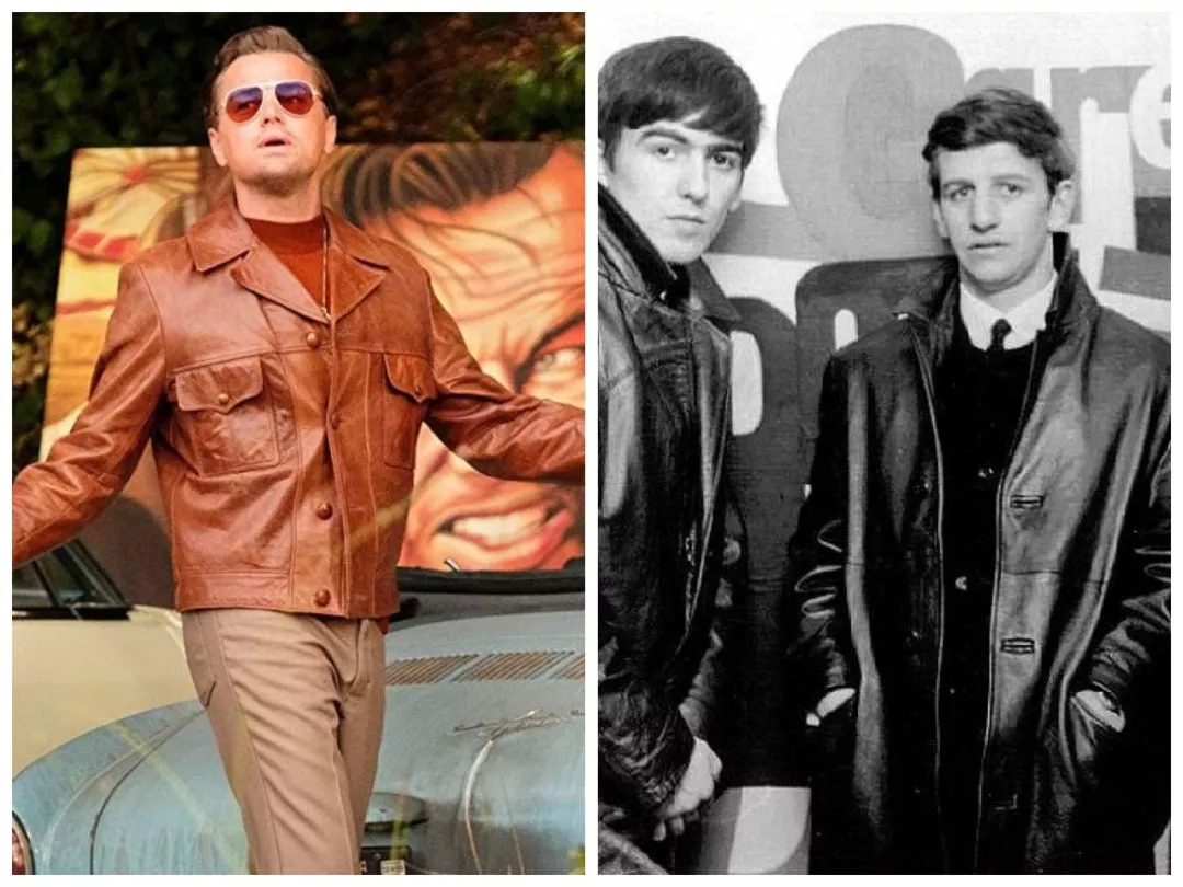 曾经的披头士乐队,还有昆汀新片《好莱坞往事》中,小李子饰演的70年代过气演员里克,都有皮衣造型。