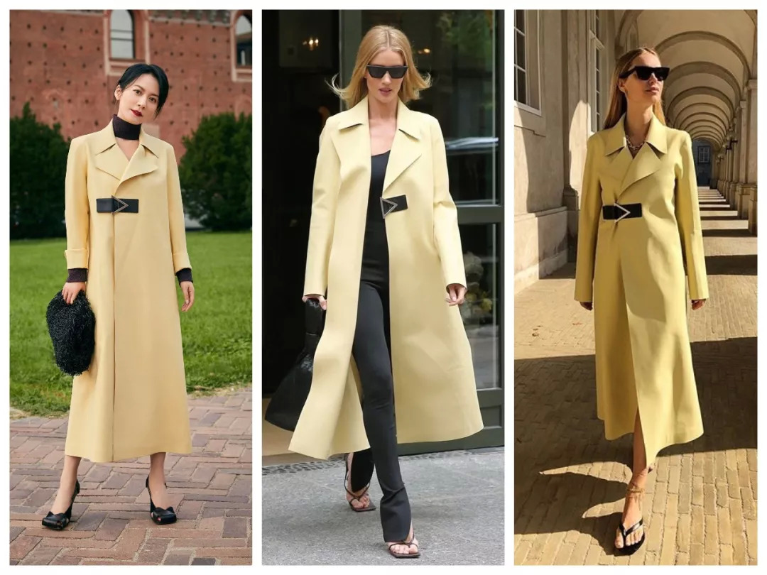 这件黄色外套,PernilleTeisbaek、大嫂、俞飞鸿都穿过。奶油质地的面料,像羊绒一般。但其实,它是小牛皮材质。