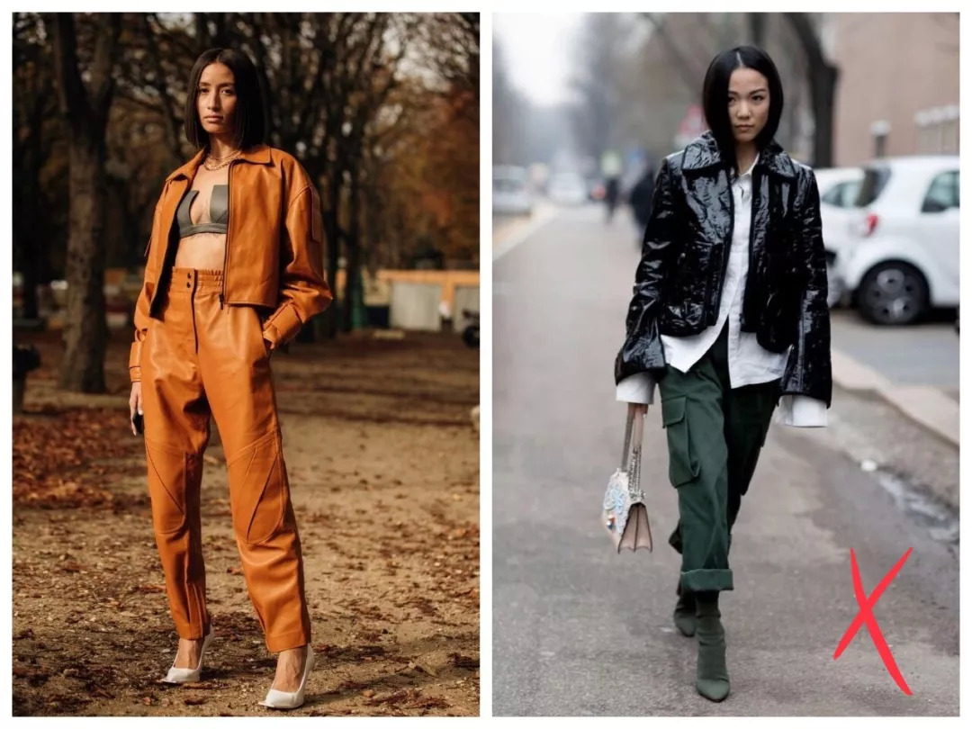 一来,浅色皮革本身就考验质感;二来,容易膨胀的皮革+容易膨胀的白,不够瘦的话,穿上也只剩膨胀...