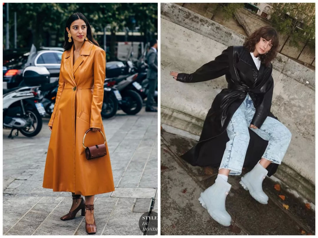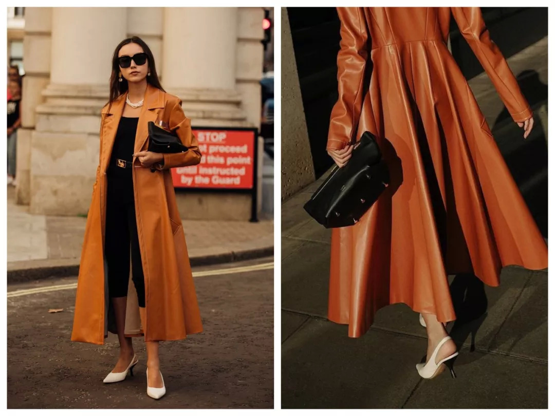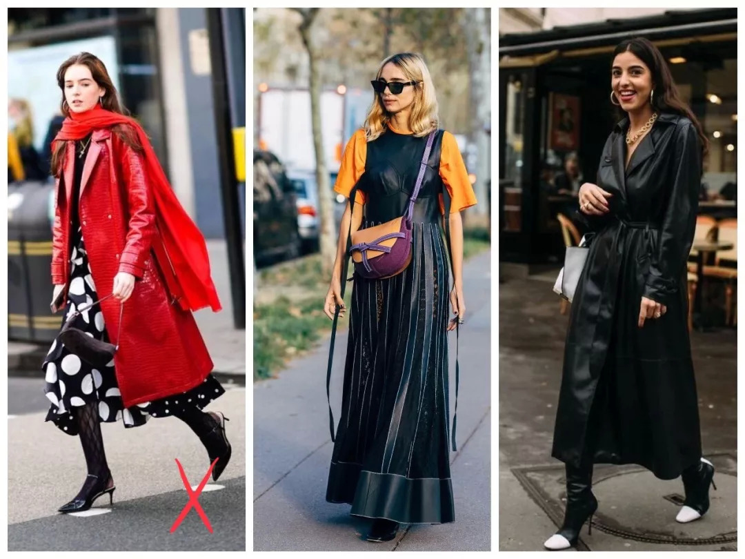 其实,皮风衣or大衣还蛮好搭的。既能搭配连衣裙、迷笛裙,凸显性感、优雅的女人味;