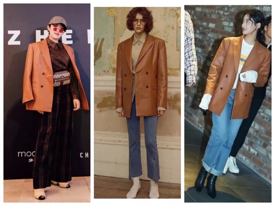 甚至,还有人拿皮西装叠搭,套在风衣里面,或是搭在呢大衣外面。