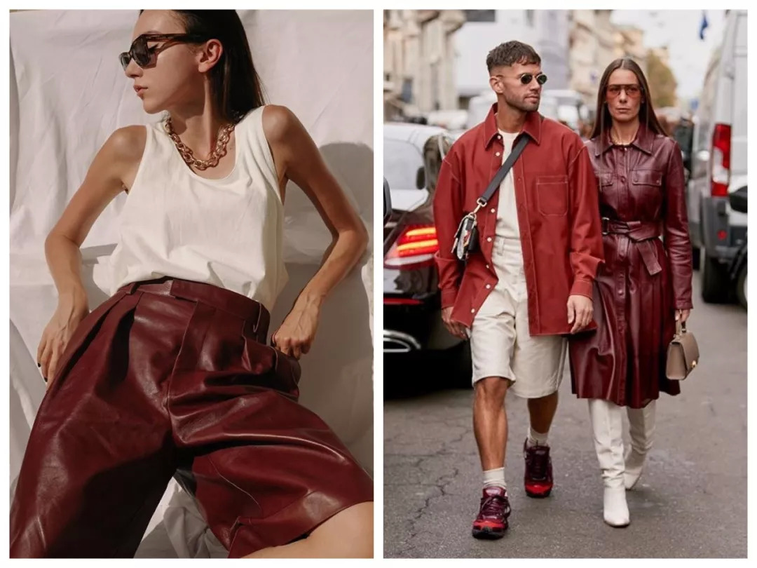 当然,酒红色比鲜红色更适合秋冬。搭配白色,就不会老气。