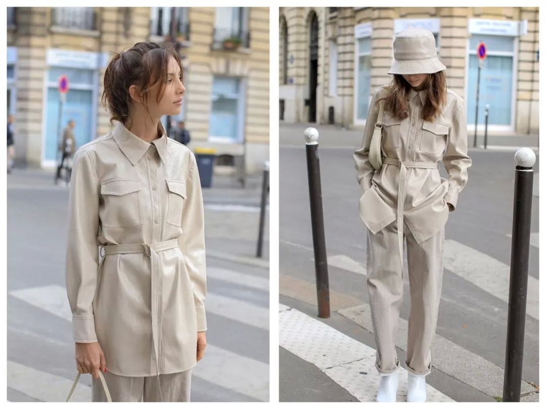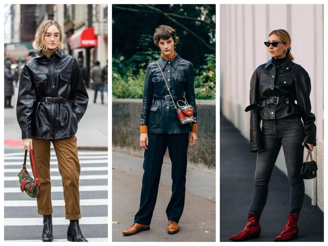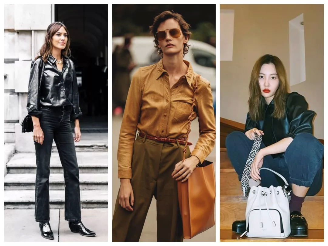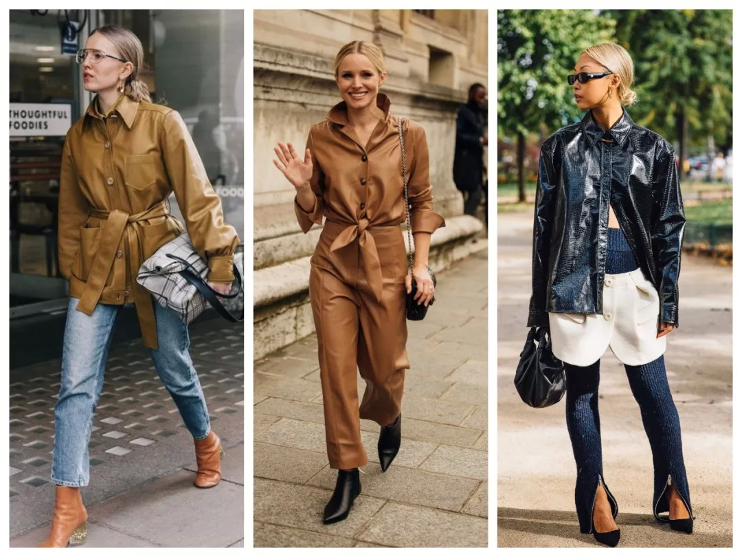 用皮革做衬衫,算是前两年想都不敢想的设计。但今年,你几乎能在各种街拍里找到皮衬衫的踪迹。