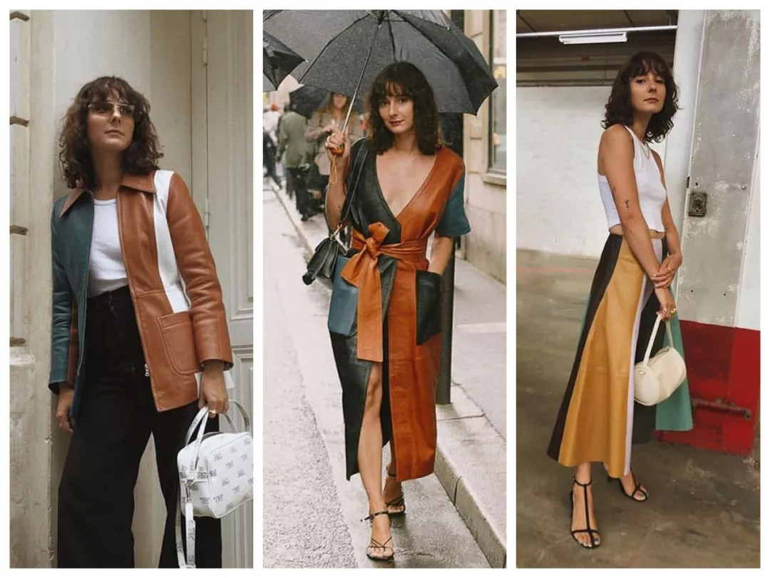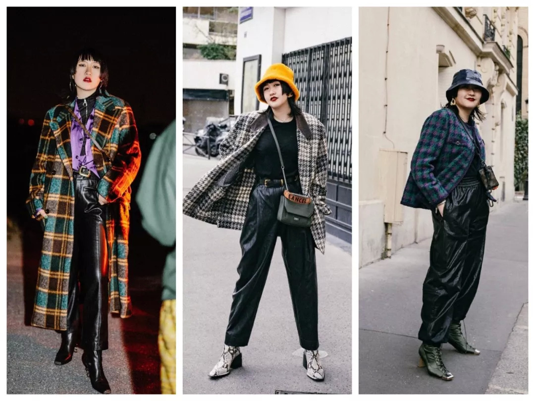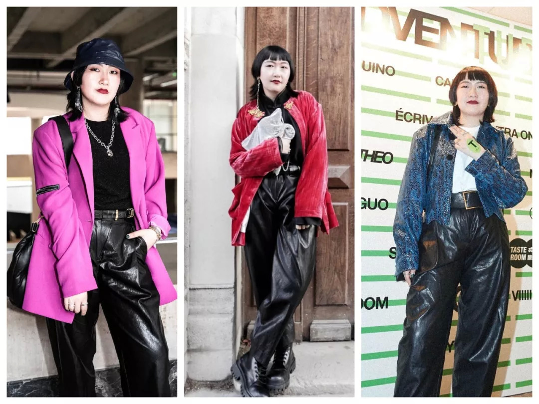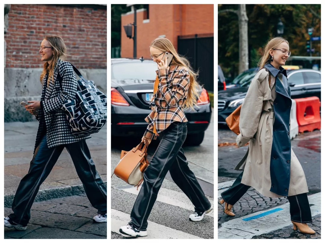 除了纯色之外,今年的皮革还有很多拼接元素。时尚博主Alyssa从夏天开始就悄悄在穿了!