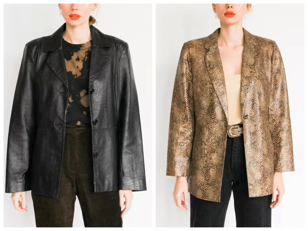 不过,因为皮西装本身就是复古款,所以Vintage爱好者不妨去淘一淘古着。