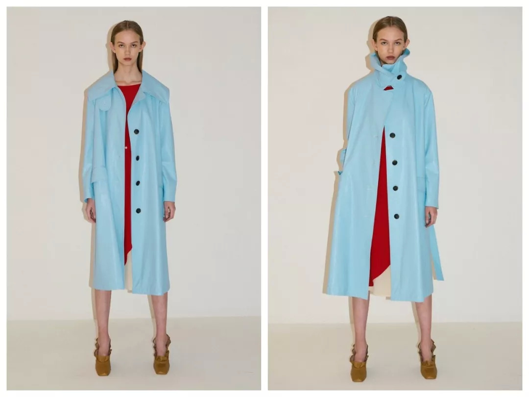 领子扣上,是复古A版;解开,又成了一件简单的H版风衣。而且天蓝色做得也太美了,价格不贵,¥1800不到就能收。
